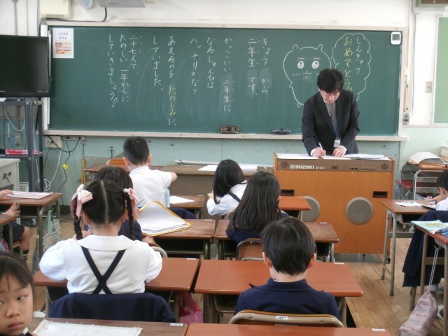 教科書や手紙を配布したり、自己紹介をしたりしています。楽しいクラスをみんなで作っていきましょう。