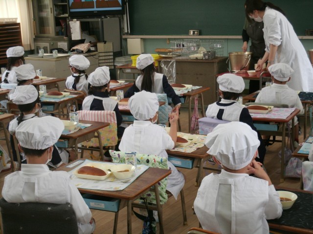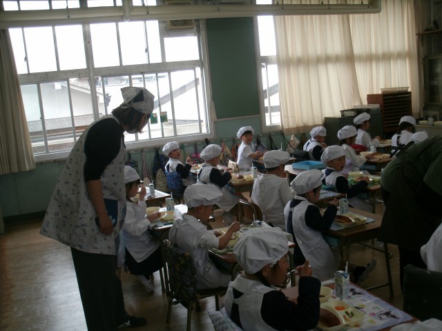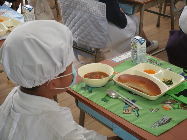 小学生になって、はじめての給食。とっても楽しみにしていました。お行儀よく、座って待つこともできました。苦手な食材も頑張って食べるかっこいい姿もありました。