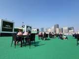 お昼は何やら広々とした屋上テラス?のような所で食べています。 青い空とビル群の景...