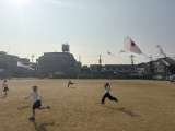 生活科の時間に「たこあげ」を行った1年1組さん。 広い自慢の運動場で、高く高く凧...