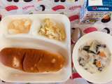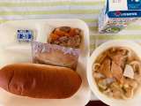 ぶたにくとごぼうのにもの なにわうどん こけいチーズ こくとうパン ぎゅうにゅう
