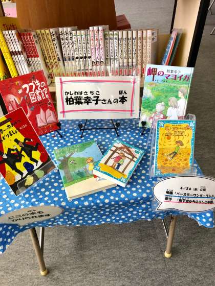 今、図書館では柏葉葉子さんの特集をしています。4/26 公開の映画『バースデー・ワンダーランド』の原作者です。『地下室からのふしぎな旅』が原作で、小6のアカネとチィおばさんが「となりの世界」で冒険する物語です。