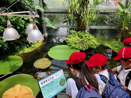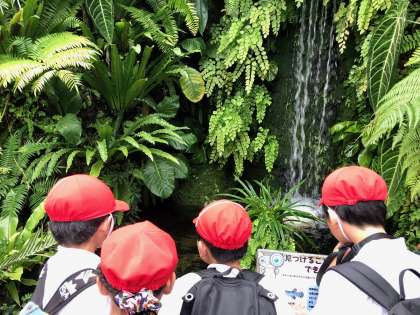 「咲くやこの花館」では、クイズラリーをしながらグループごとに見学しています。