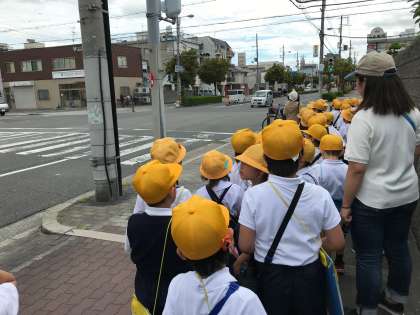 それぞれの班の班長さんが、班の子の人数を数えたり、並んで歩くときの注意をしてくれたりしてがんばっていました。