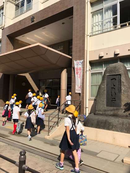 子どもたちは、いつものように集団登校で元気よく登校してきました。