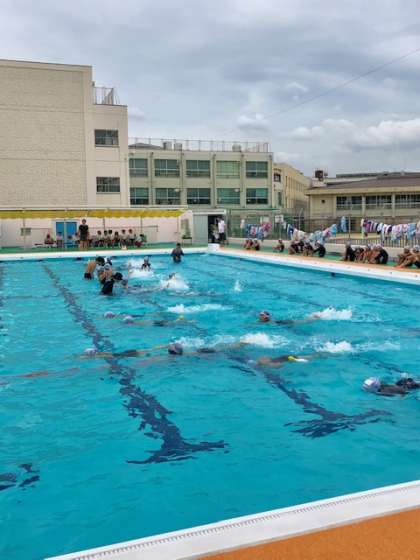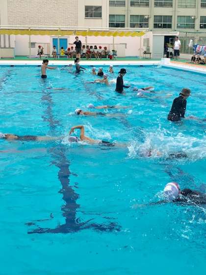 「泳ぎにつながる感覚を探ろう」ということで、水中でのバブリングからペアでのふし浮きなど基本の感覚づくりを行い、けのびバタ足、クロールへと練習を進めました。