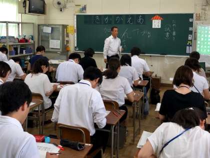 暑い中、指導力向上をめざして新任教員のみなさんが頑張っています。