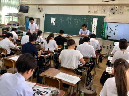 国語科書写新任研修を本校を会場にして実施しています。昨日より26日(金)までの4日間となっています。