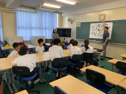 今日は「ESS部」「美術部」「陸上部」「水泳部」の体験日でした。ESS部では、小学校でもお世話になっているブランドン先生が楽しく英語を教えてくださいました。日本と外国では、動物の鳴き声も全然違う風に認識されていることがわかり、その違いに驚いたり、笑ったりしていました。ちなみにロバは、英語では「ヒーハー!」と鳴くそうです。
