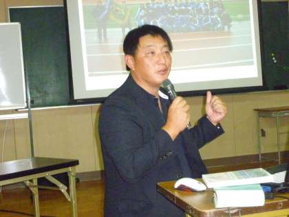 10月6日(月)待ちに待った全国高校サッカー選手権優勝監督である富山第一高等学校大塚一朗監督の講演会と関西学院大学サッカー部の皆さんによるサッカースクールは、暴風警報発令による臨時休校のため中止となりました。大塚監督は講演前日に来阪されていましたので、急遽予定を変更し本校教職員に講演をしてくださいました。教職員を通じ、講演内容を育和小学校の子どもたちに伝えたいと思います。監督は謙虚な人柄で、自分の苦労や手柄を一切話されない姿勢、そして選手がいかに自主性を発揮していったかのお話に感動しました。