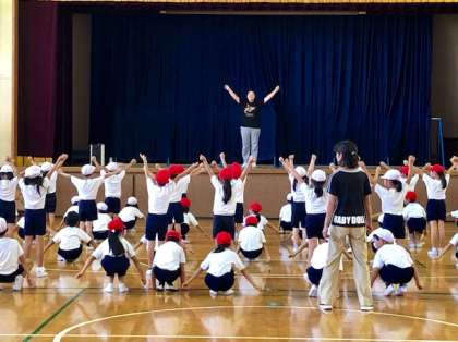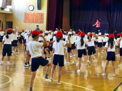 4年生のエイサーと2年生のダンス、先生の指示をしっかり聞いて頑張って取り組んでいます。