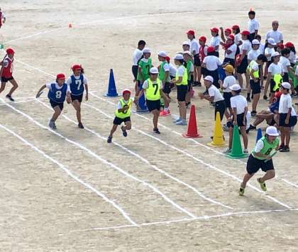 チームごとにしっかりバトンをつなぎ、全速力で走っていました。