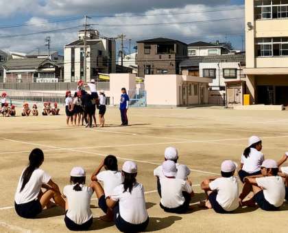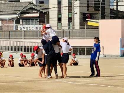 運動会に向けて、6年生は運動場にて騎馬戦の練習をしています。