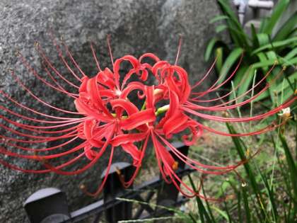 学校でも校門横に漸く真紅のヒガンバナが咲きました。別名を「曼珠沙華」や「狐の松明」とも呼ばれ、田んぼの畦道などにもこの時期よく見られます。