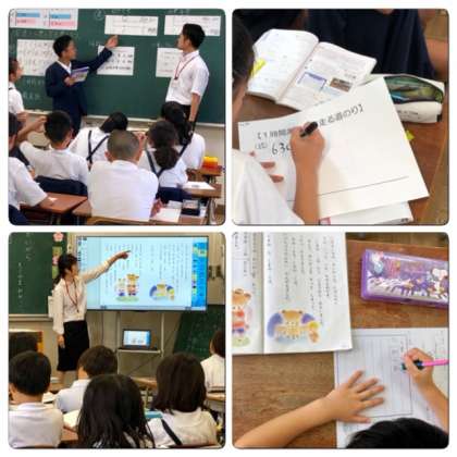 算数科や国語科で、やや緊張しながらも子どもたちにしっかり指導している様子が印象的でした。大学からも指導教官の先生方が来られていました。