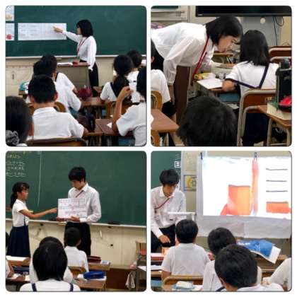 本校で学んでいる教育実習生6名がそれぞれのクラスで授業研究を行いました。