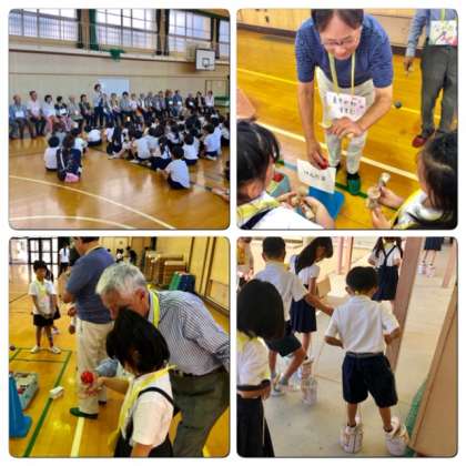 3校時に、1年生が「むかしあそびをたのしもう」ということで、地域の方々にたくさん来ていただき体験活動をしました。