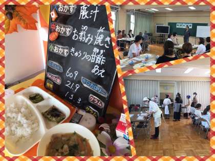 本日の献立は「ご飯、牛乳、お好み焼き、豚汁、きゅうりの甘酢あえ」でした。