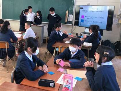 白鷺中学校の防災ALTの1年・2年生による防災出前授業のようすです。