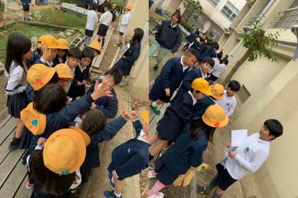 ビオトープ内には、何人かのビオトープ委員さんがいて、クイズを出してくれました。全問正解した人には、手作りの折り紙プレゼントが渡されていて、特に低学年の子どもたちが喜んでくれました。
