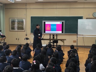 首都ウランバードルは、マイナス20度を超える寒さであることやモンゴルの言葉を少し教えていただきました。子どもたちは、モンゴルについての知識はあまりなかったですが、大相撲の横綱白鵬の写真を見るとみんなしっかり頷いていました。