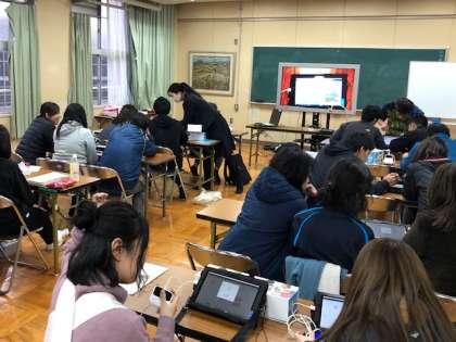 放課後、多目的室において教職員のためのプログラミング研修会を行いました。