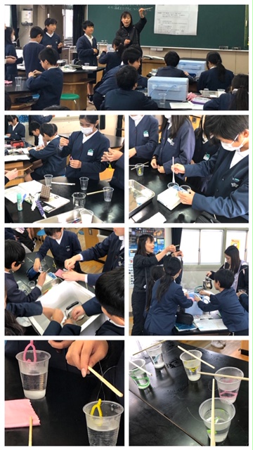 今日は、5年1組が理科室にて校内授業研究を行いました。