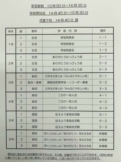 あわせて、学習参観の学習内容・場所等を掲載しておきますので、ご覧ください。