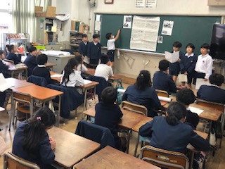 1組・3組は、三年生のまとめ「みんなにやさしい町」、2組は「算数的思考学習・リコーダー演奏」をテーマに発表しました。