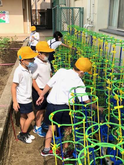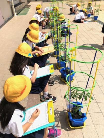 2年生の子どもたちは、朝登校してからミニトマトの水やりをしています。