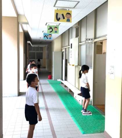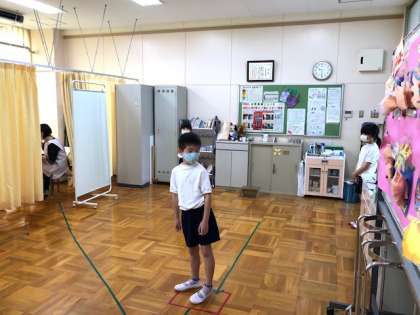 今日も子どもたちは、保健室や廊下でソーシャルディスタンスを守り、静かに校医先生診察の順番を待っていました。