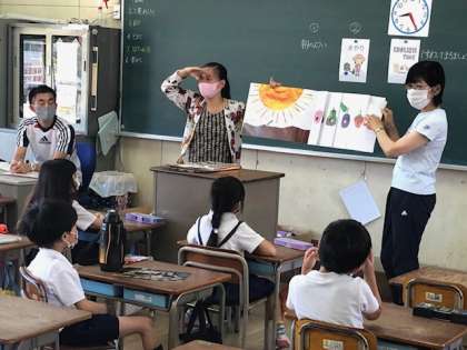 今朝は、2年1組の教室に、C-net Jobel Bambe 先生が入り、英語の絵本の読み聞かせでした。