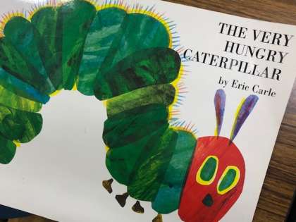 Eric Carle 「THE VERY HUNGRY CATERPILLAR」(はらぺこあおむし)の英語版です。