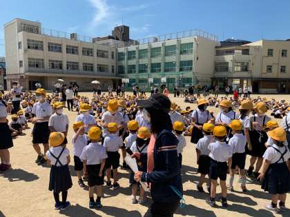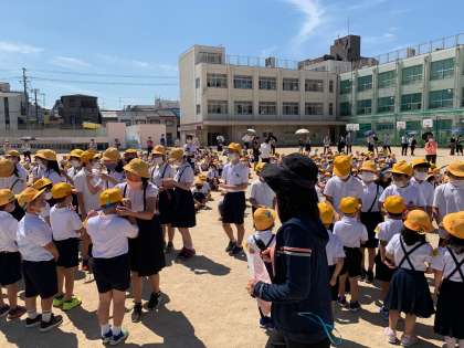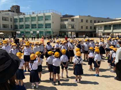 6年生のみなさんが、この日のために手作りのメダルを用意してくれていました。1年生のみなさんは、6年生のお兄さん、お姉さんたちから、一人ずつ首にメダルをかけてもらいました。1年生の子どもたちは、嬉しそうにメダルをながめていました!