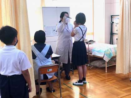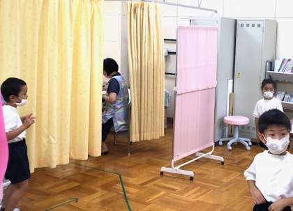 午前に、1年から4年の眼科検診と午後から1年の内科検診を学校医に来ていただいて行いました。