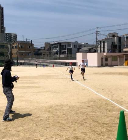 6年生では、体育科で50m走のタイムを計測しています。