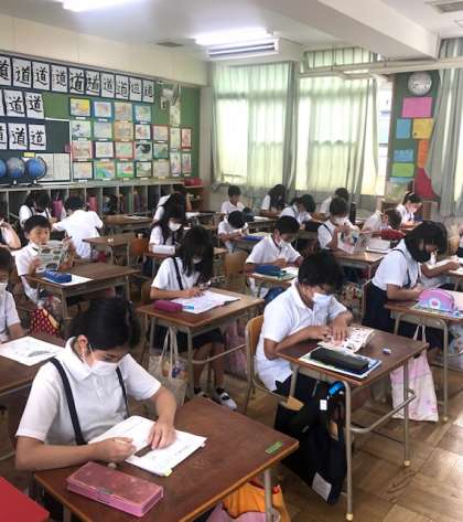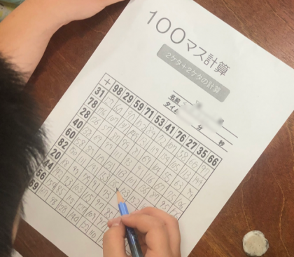 朝学の時間に各学年がんばっています。5年1組の教室では、100マス計算に真剣でした。どんどん計算力がつき、スピードアップしています。