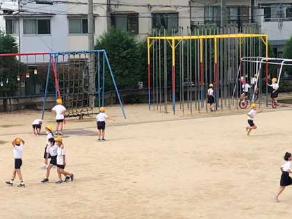 登校後、運動場で早速子どもたちは元気よく遊んでいました。