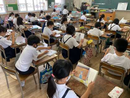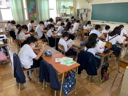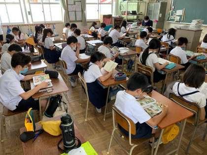 木曜日の朝は「読書タイム」です。朝の涼しい時間帯の読書ははかどるようで、どの学年も静かに読書ができています。この1年で、読んだことのないジャンルの本も手に取ってみてほしいです。