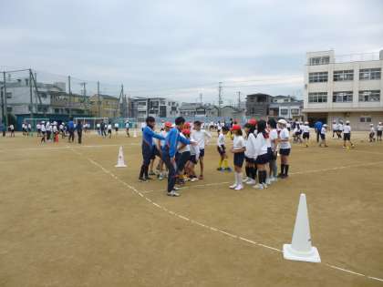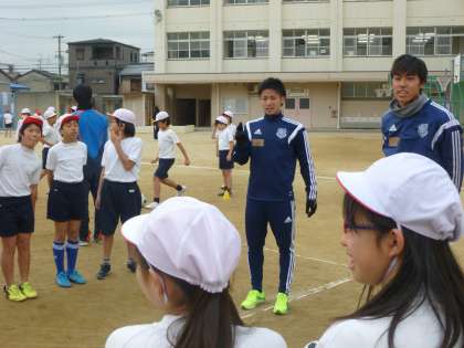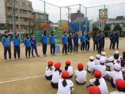 12月8日(月)関西学院大学サッカー部の皆さんが来校され、6年生130名がサッカーの楽しさを教わりました。来シーズンJリーガーとなる福森主将や全日本大学選抜代表の徳永選手、昨年全国高校サッカー選手権で優勝した富山第一の元主将の大塚選手はじめ18名の皆さんが来校され、6年生が直接サッカーの指導をいただきました。さる、10月8日台風来襲で中止になったサッカー教室でしたが、再度の来校を快諾していただきました。子どもたちは感動的な時間を過ごしました。