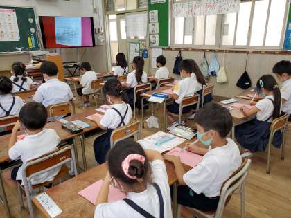 新学習指導要領では、1年・2年の国語科書写の時間に水書の学習が入りました。