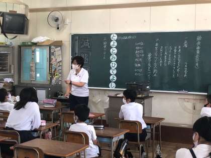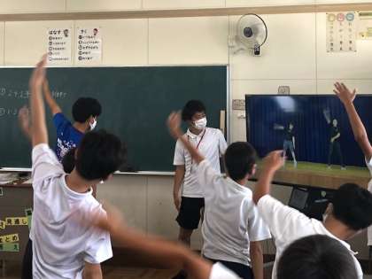それぞれにめあてをもって活動しているようすが窺えました。運動委員会では、ラジオ体操を動画を見ながら練習していました。