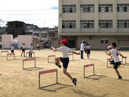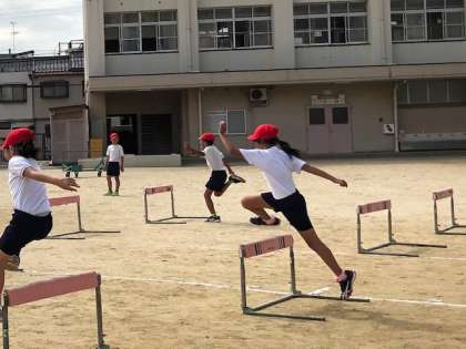 4年生は「育和陸上競技大会」に向けて、ハードル走の練習をしています。
