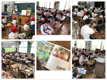 今朝も音楽を聴きながら静かに子どもたちは読書をしています。