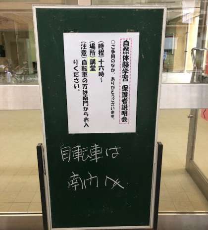 本日、16時より 講堂にて5年自然体験学習保護者説明会を実施しています。5年生保護者の皆さま方におかれましては、ご多用の中ですが、よろしくお願いいたします。
