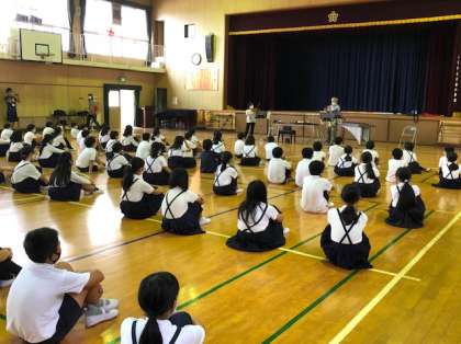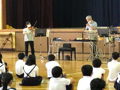 本来なら10月21日に全校児童対象に文化庁派遣事業で、本公演として演奏していただく予定でしたが、感染症拡大防止対策により2月に延期になりました。