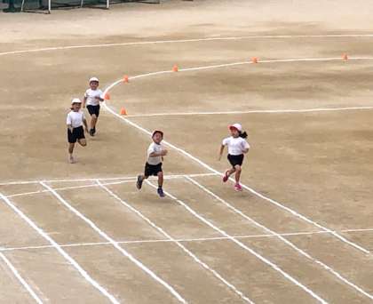 1年生にとっては、運動場のトラックのカーブが難しいかもしれないですが、一生懸命に走っていました。本番でもその調子で全力で頑張ってほしいですね。