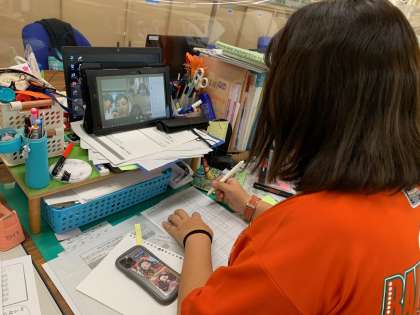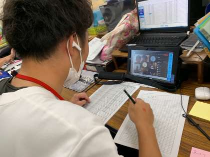 本日は、双方向通信の接続テストの日です。現在、各学級の担任の先生方が、学級の子どもたち、保護者のみなさんと通信をされています。