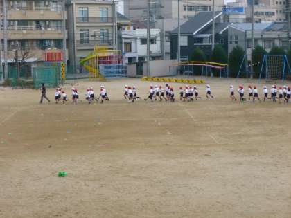 1月8日(木)なかなか気温が上がらない寒い日になりましたが、2年生がグランドで元気いっぱい体育の授業を行いました。今月の目標は「寒さに負けず健康な生活をしよう」です。みんなで大きな声を出し準備体操を行ったあと、ウォーミングアップのためグランドを何周も走りました。体力と気力を充実させて、寒さを吹き飛ばしましょう!
