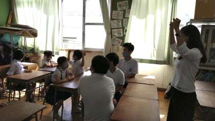 今日は、「English Day」ということで、2時間目と3時間目の業間の休み時間に、C-NET Jobel Bambe 先生との「English Talking」がスタートしました。1年生から6年生の子どもたちが自由に集まって英語で話しています。英語力を高めてほしいですね。